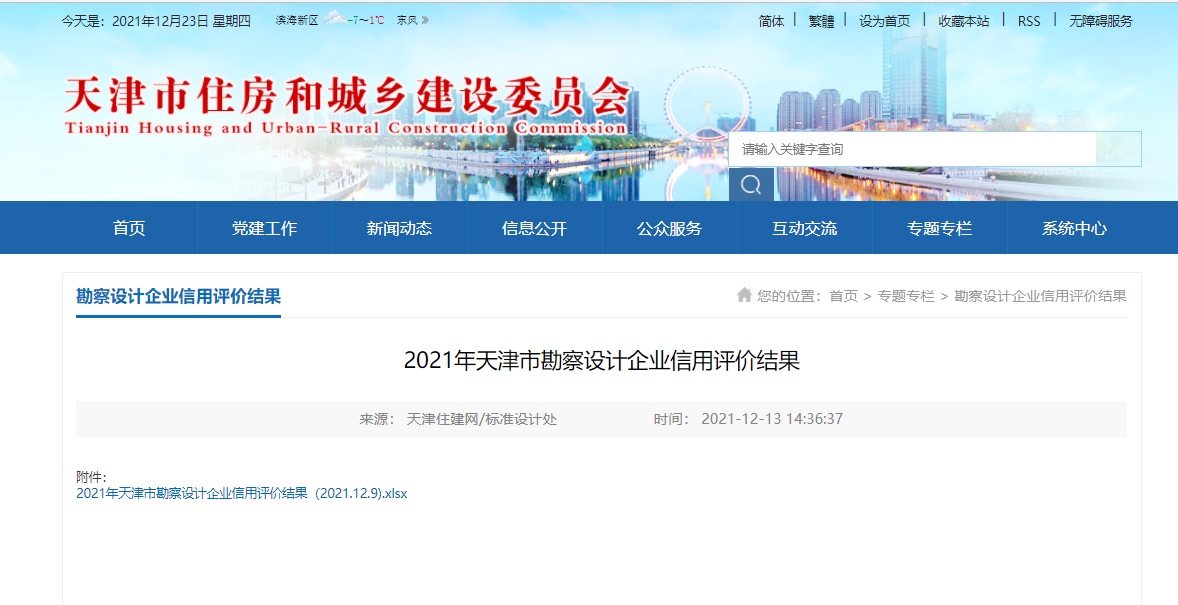 - 泰達(dá)設(shè)計(jì)榮獲2021年天津市勘察設(shè)計(jì)企業(yè)信用評價A級