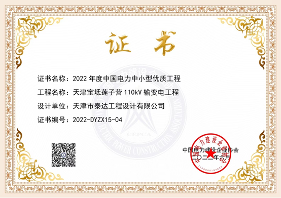 - 蓮子營110kV變電站工程榮獲2022年度中國電力中小型優(yōu)質(zhì)工程獎