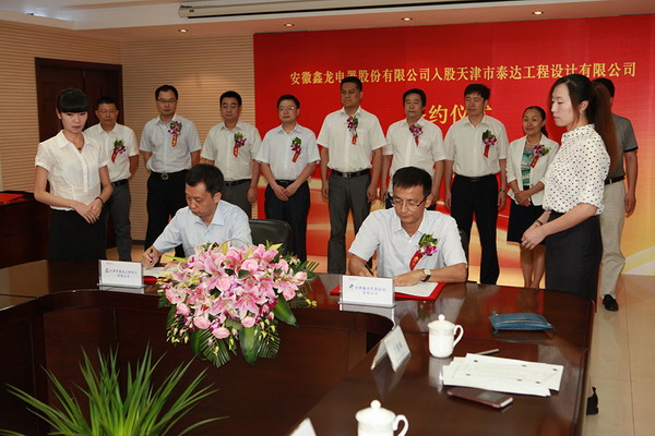2014年7月8日上午9:30分,安徽鑫龍電器股份有限公司入股天津市泰達工程設計有限公司簽約儀式成功舉行,這標志著泰達設計公司迎來了新的發(fā)展機遇,鑫龍電器將與濱海電力、泰達設計共同攜手、共創(chuàng)未來。與會領(lǐng)導表達了對泰達設計公司未來發(fā)展的美好愿望和良好信心,我們相信,有各位領(lǐng)導的大力支持、有全體員工的共同努力,泰達設計公司必將健康發(fā)展、走向輝煌!
