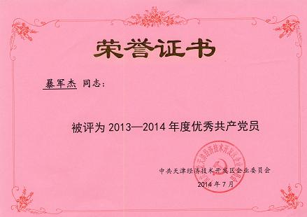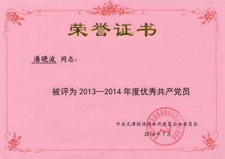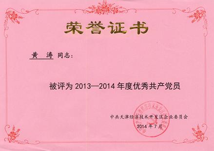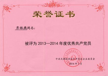 經企業(yè)黨委批準,公司黨支部獲得2013-2014年度先進黨支部稱號;楊瑩、齊林燕、黃濤、潘曉波、暴軍杰五位同志獲得優(yōu)秀共產黨員稱號,特此祝賀。
