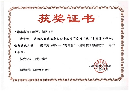 在電力設(shè)計(jì)分公司及相關(guān)部室的精心準(zhǔn)備和不懈努力下,由我公司設(shè)計(jì)完成的“開發(fā)區(qū)(洞庭路)220kV變電站工程”和“濱海站交通樞紐配套市政地下空間工程(首期開工部分)供電系統(tǒng)工程”,分別榮獲天津市勘察設(shè)計(jì)協(xié)會(huì)2015年“海河杯”優(yōu)秀勘察設(shè)計(jì)電力二等獎(jiǎng)和三等獎(jiǎng);此外,公司重點(diǎn)項(xiàng)目“千米橋220kV變電站工程”榮獲國家電網(wǎng)公司2015年度輸變電工程優(yōu)秀設(shè)計(jì)二等獎(jiǎng)。